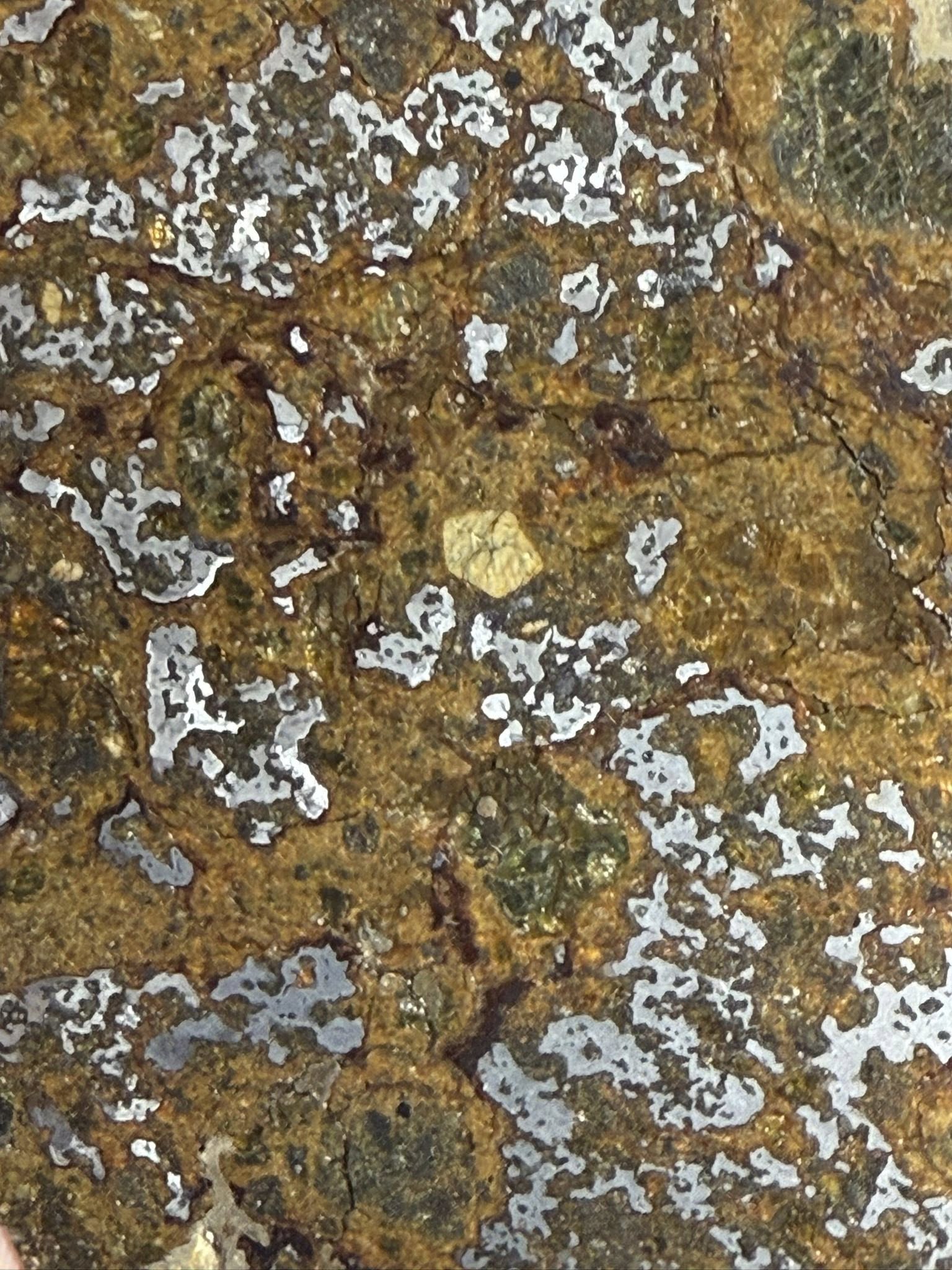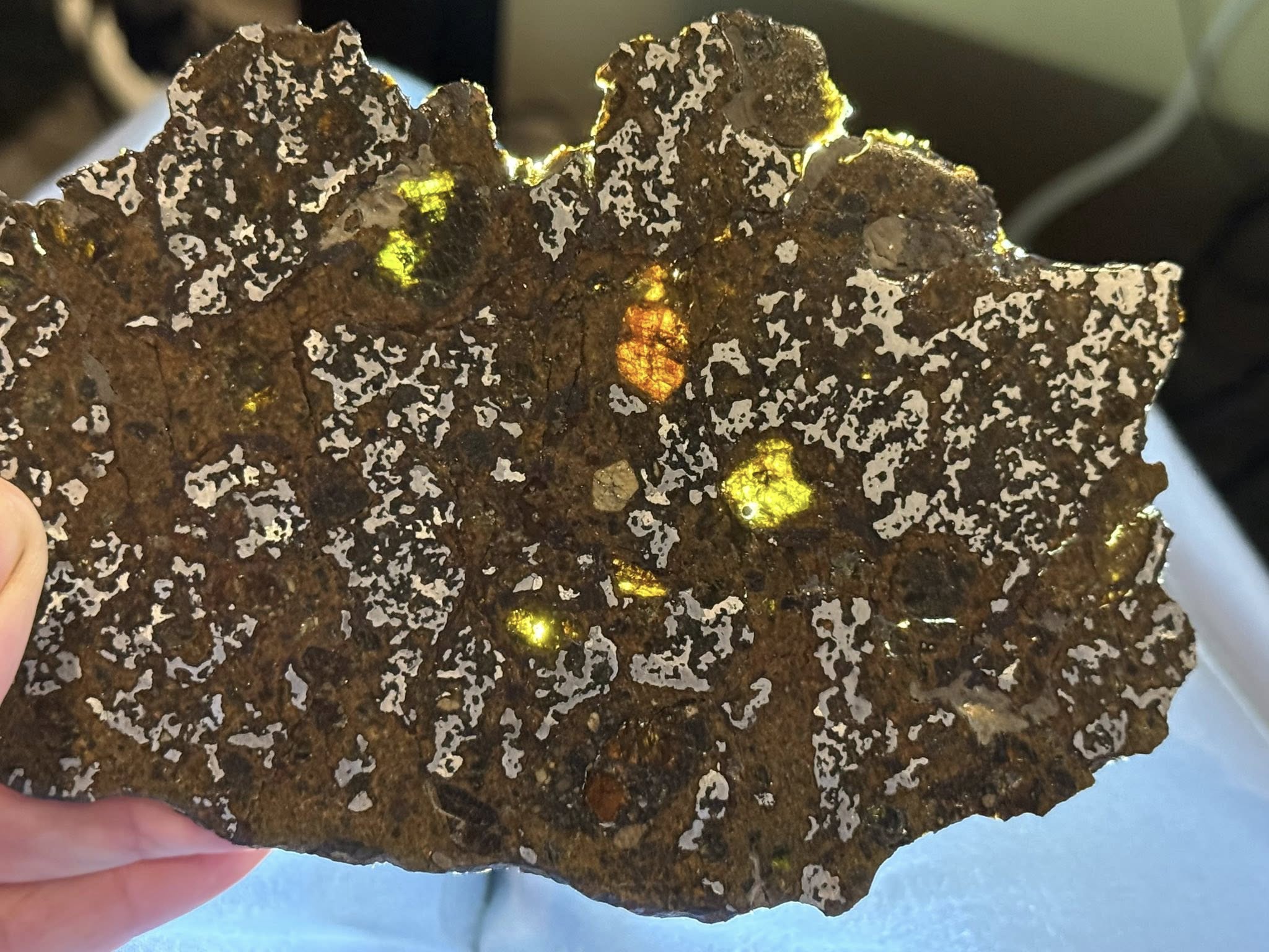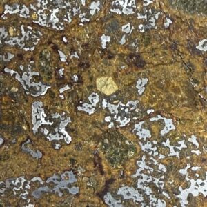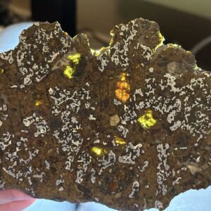 124g El Eglab Mesosiderite Meteorite – Full Slice with Translucent Features and Intact Barred Olivine Chondrule