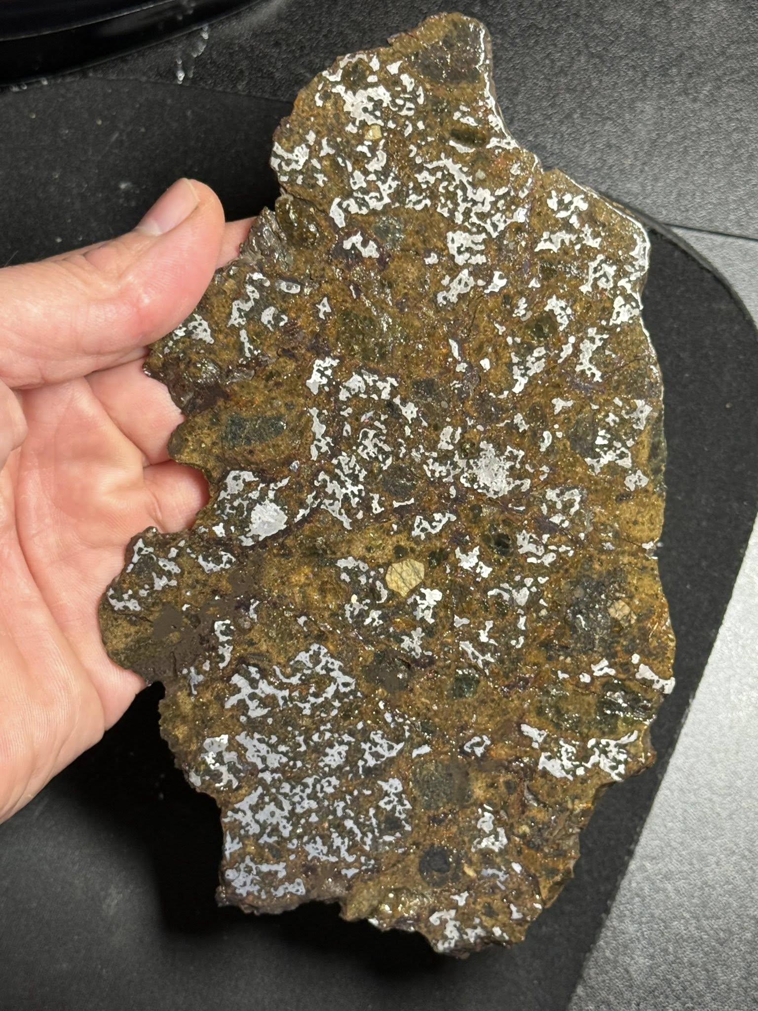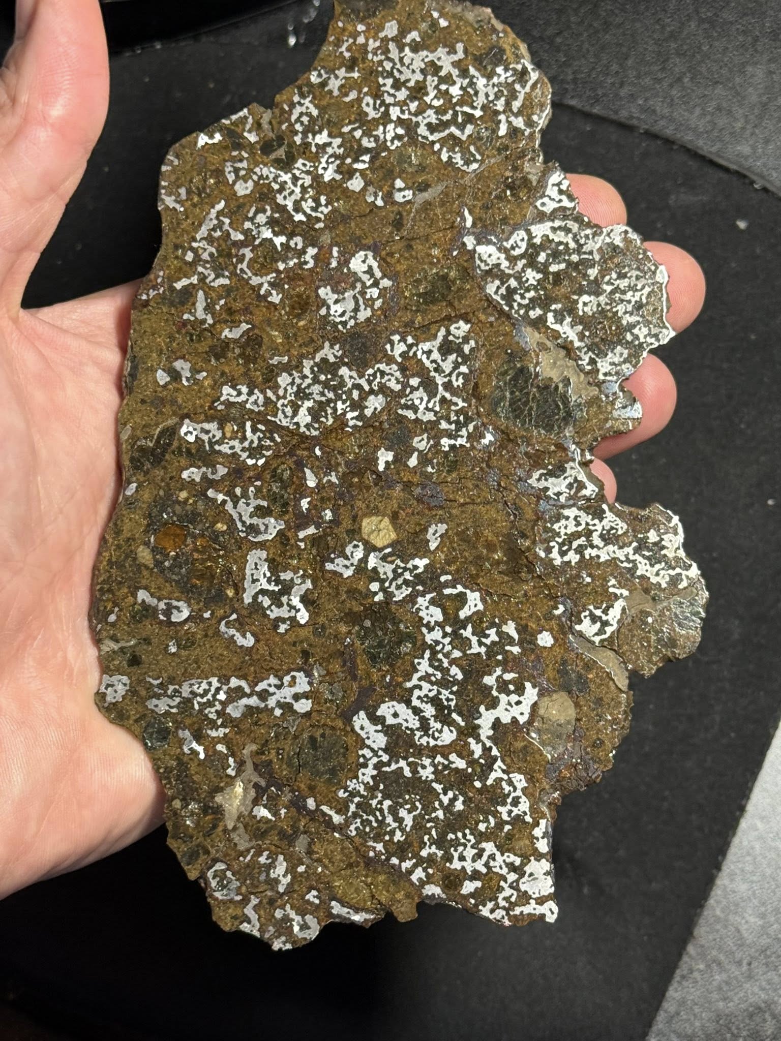 This violent origin explains their brecciated structure, complex mineralogy, and the presence of melt veins and mixed components from both core and crustal material. Unlike other meteorite classes, mesosiderites remain one of the most mysterious in terms of their exact origin and timeline, making every specimen a valuable scientific puzzle piece.