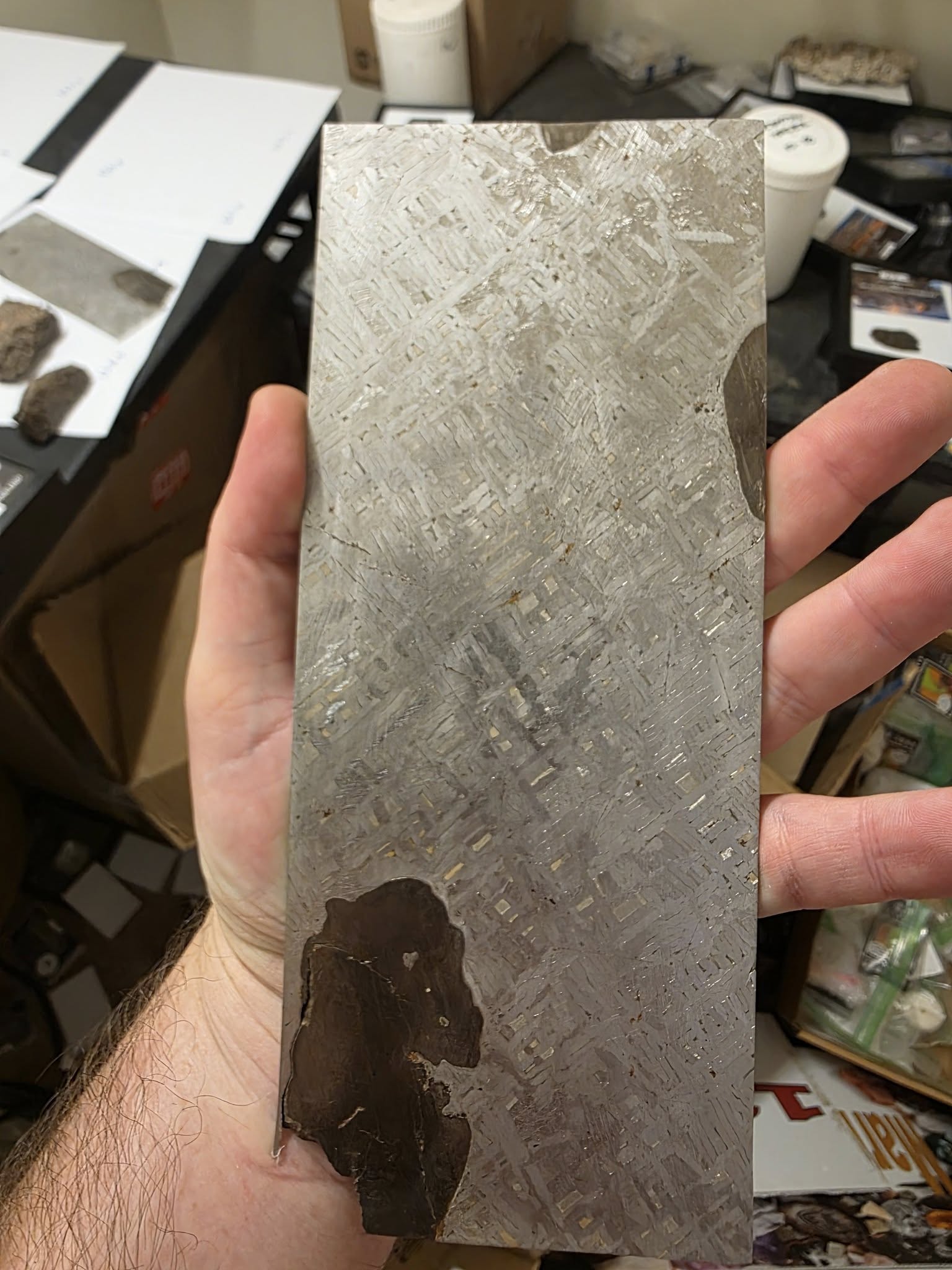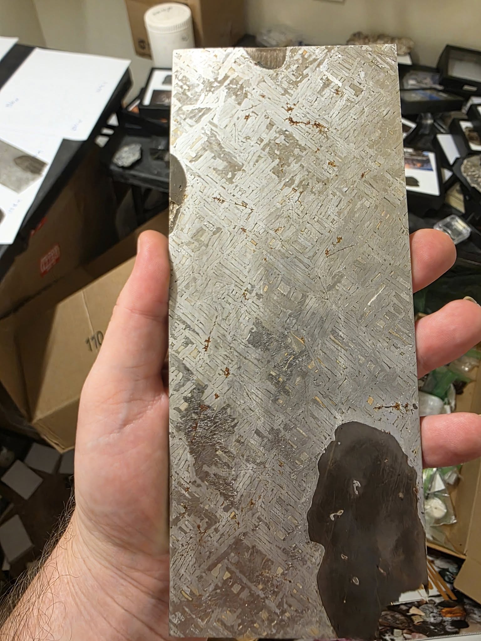 What makes this piece stand out is its naturally etched surface on both sides, showcasing an organic Widmanstätten pattern formed over millions of years in space. Unlike acid-etched slices, this natural etch is subtle, authentic, and entirely untouched — a rare feature prized by collectors.